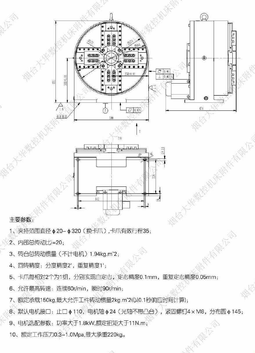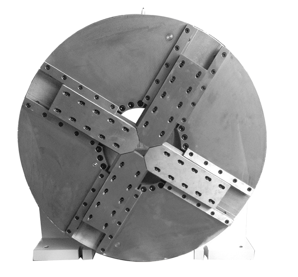 2、轉(zhuǎn)臺(tái)采用高度集成式設(shè)計(jì)方法,將卡盤、氣動(dòng)組件、回轉(zhuǎn)支承、分度機(jī)構(gòu)、減速機(jī)構(gòu)