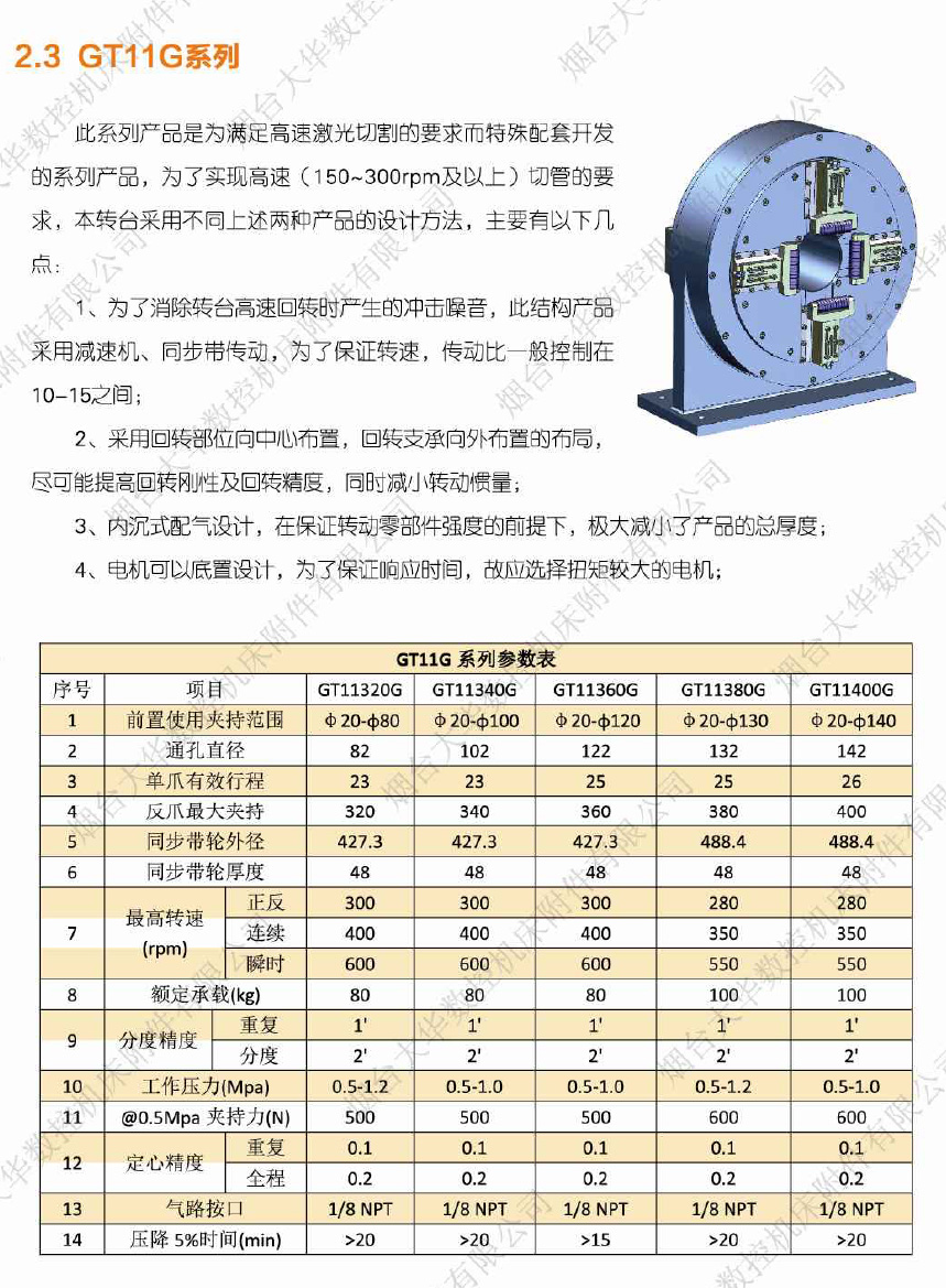 此產(chǎn)品為后置激光管切割轉(zhuǎn)臺(tái),通配160、220及320型前置大通孔轉(zhuǎn)臺(tái),此轉(zhuǎn)臺(tái)除具備GT11部分優(yōu)點(diǎn)以外,還具有以下特點(diǎn):