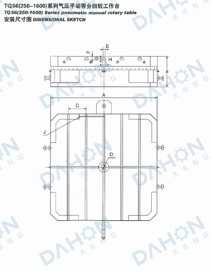TQ56系列氣壓手動等分轉(zhuǎn)臺是以端齒盤為分度元件,氣壓抬起、手動轉(zhuǎn)位的高精度等分轉(zhuǎn)臺。它轉(zhuǎn)動力矩小、承載能力大、剎緊可靠,分度精度可達10",重復(fù)性3",適用于各類鏜、銑床、磨床等高精度加工場合。(可根據(jù)用戶需要設(shè)計制作其他規(guī)格)
